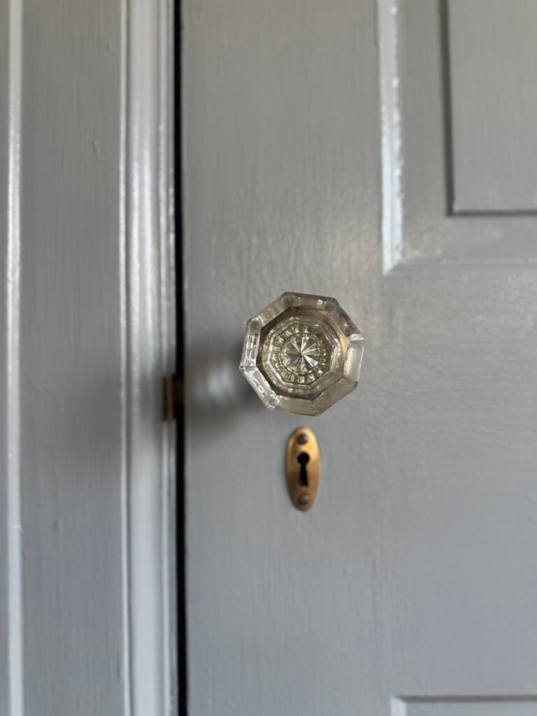 - Vintage-look Interior Glass Door Knob that give the look of historic finishes. For when you can’t find what you need on Facebook Marketplace.