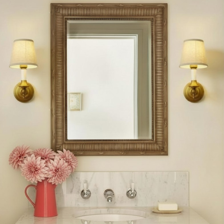 A single overhead fixture can flatten the room and cast unflattering “why am I scowling” shadows. Even a beautiful bathroom can feel cold if the lighting is doing all its work from one point above your head.